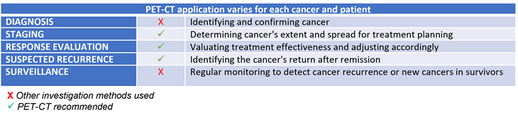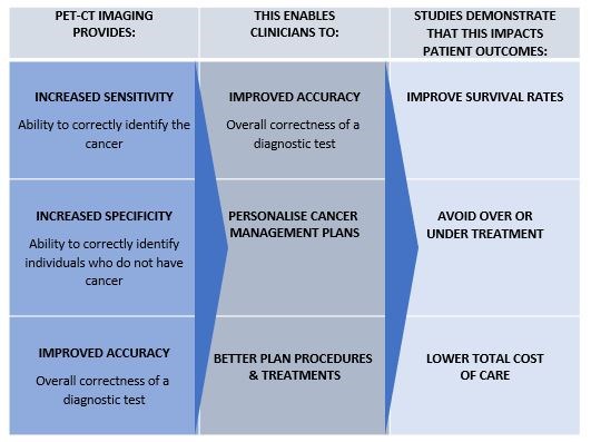 PET-CT provides oncologists with accurate information on the extent and severity of disease which enables them to better plan a patients cancer management and treatment, avoiding over or undertreatment, and potentially improving patient outcomes.